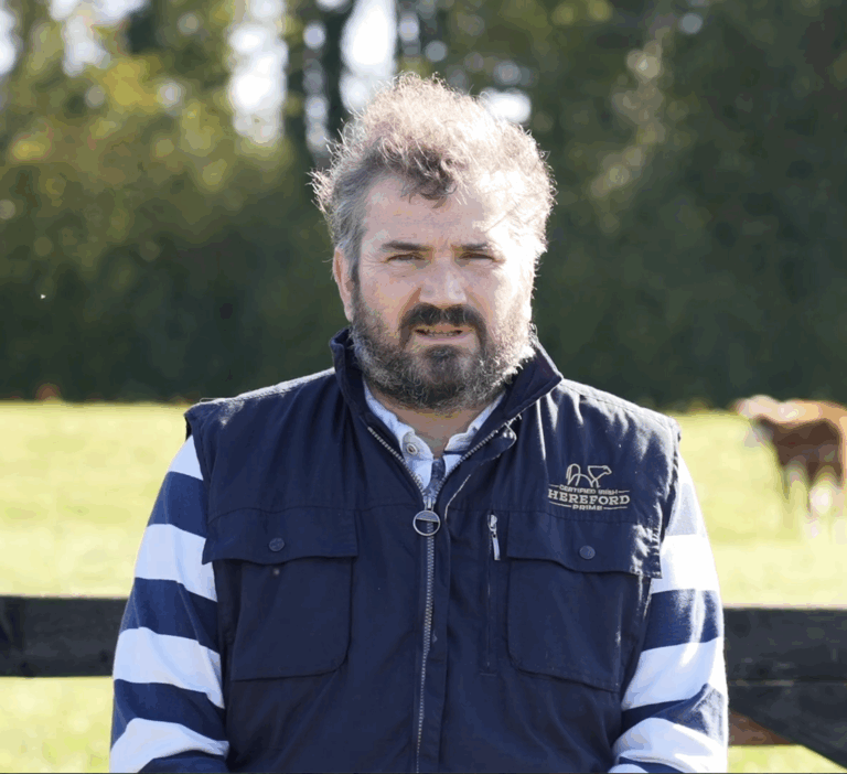 We have milk and dairy cows, alongside sucklers. Our sucklers are all the Hereford breed. The land on the farm is very fragmented, we have six different parcels of land in a four-to-five-mile radius, which means a lot of travelling every day between the main farmyard and the different fields. I have developed a reseeding plan which sees me reseeding around ten to fifteen percent of the farm every year. I use a mix of grass and clover to keep the grazing at top quality. We grass measure and we do a lot of soil sampling to ensure that the grass is as good as it can be for our Hereford cattle.